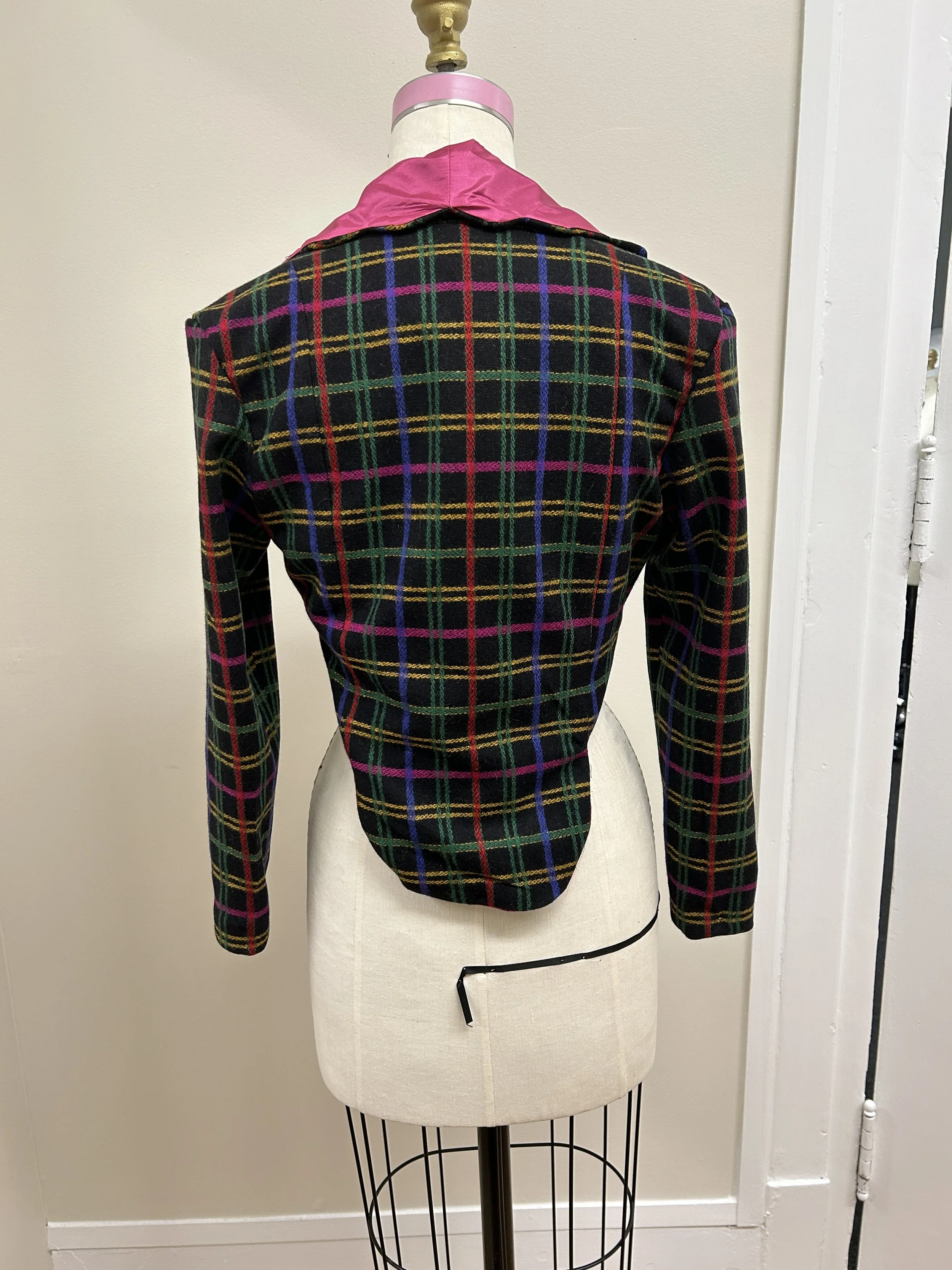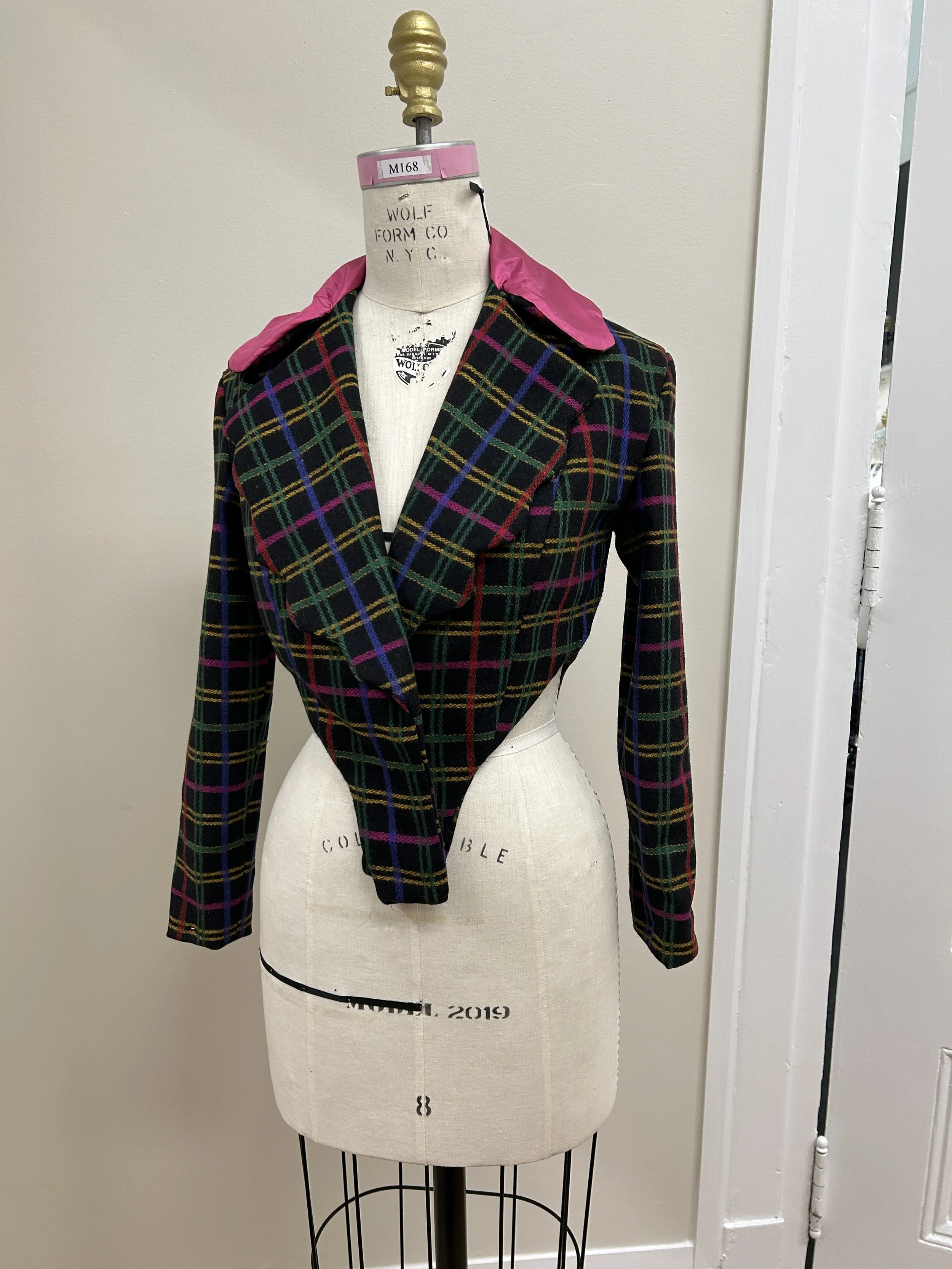 Tasked with designing a styleline jacket from repurposed fabrics, I began by draping muslin directly onto a women’s dress form to shape and define the garment’s unique silhouette. Using this initial muslin drape, I created custom paper pattern pieces that captured each design detail, from the collar and lapels to the jacket's varied style lines. With careful attention to structure, I cut and sewed the final fabrics, integrating linings for a polished finish. This project combined precision in patternmaking with creativity in sustainable design, transforming repurposed materials into a sophisticated, one-of-a-kind jacket.