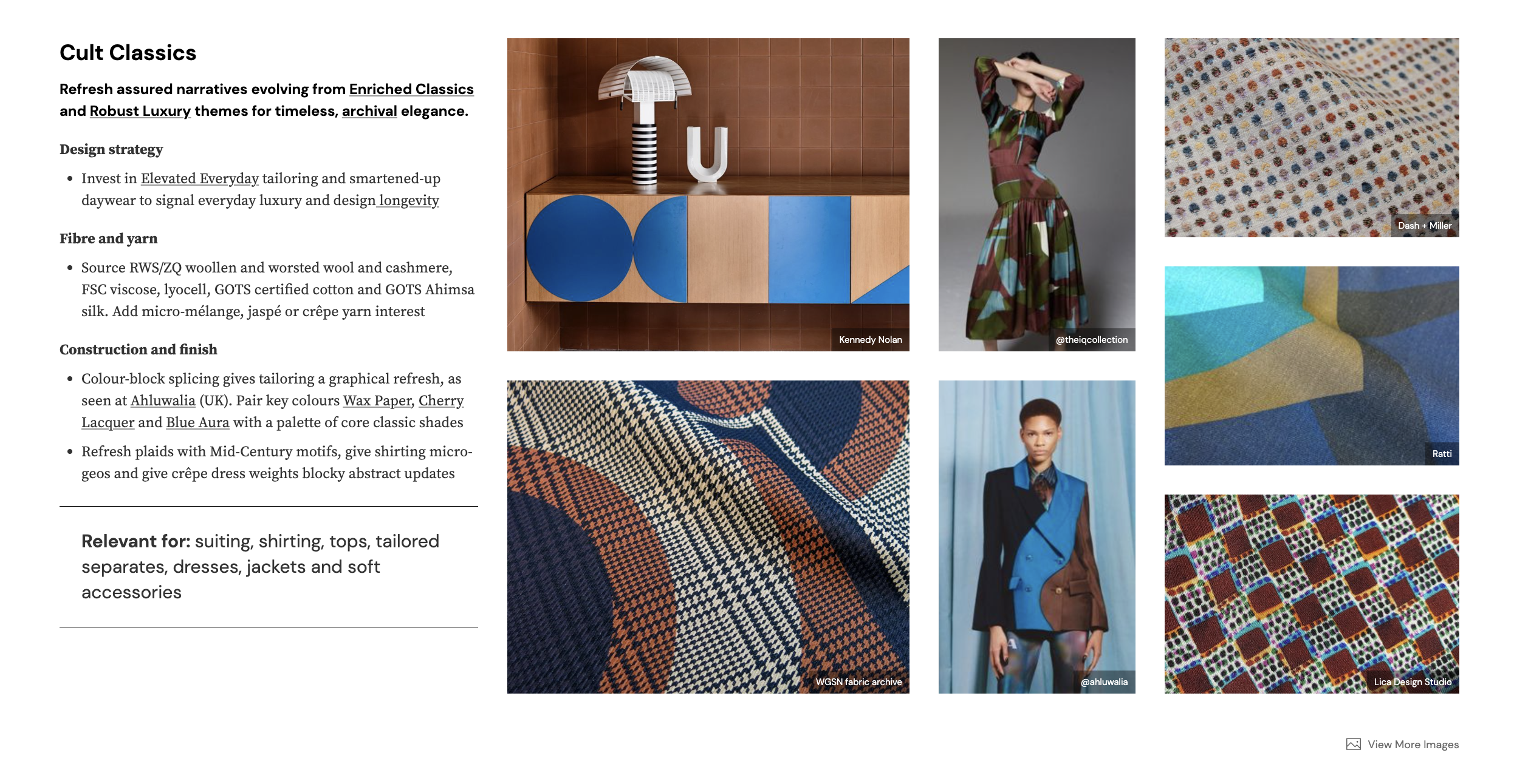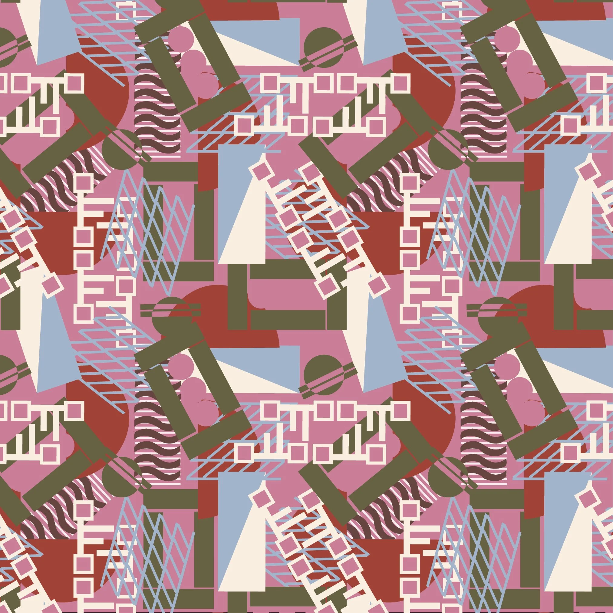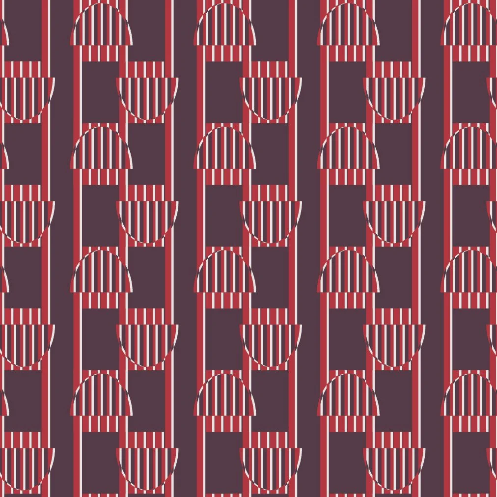 For this repeat collection, Femme/Form/Furore, I began my research by exploring print and pattern trends on sites like WGSN to understand current fashion directions. I then delved into historical graphic and geometric repeats from the 1910s, 1920s, and 1930s using resources like Pinterest, the New York Public Library digital database, and other library archives. To ground my work in contemporary fashion, I studied designers like Diane von Furstenberg to better understand how femininity and work-appropriate clothing are expressed through prints and patterns in the fashion industry. I also referenced the Vogue Business 2025 Autumn/Winter Size Inclusivity Guide to inform my understanding of the plus-size market and how prints can be designed to flatter a diverse range of body types.